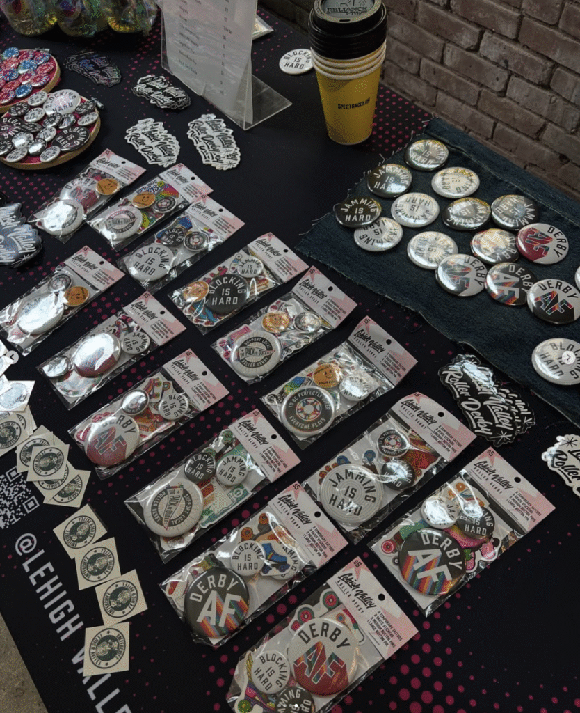 Getting the word out about a niche sport is difficult. We’ve found setting up informational tables at targeted events (local coffee shops, punk DIY flea markets, skate rinks) helps us directly reach more people in our demographic. By sourcing a table cover from a local printer that fits within our branding and has vital information (social handles, url, QR codes), we are able to raise our visibility while also supporting local businesses. We also plan to place custom coasters around to local breweries and restaurants as well as have a custom beer brewed in our name courtesy of our afterparty hosts, Weyerbacher Brewing.